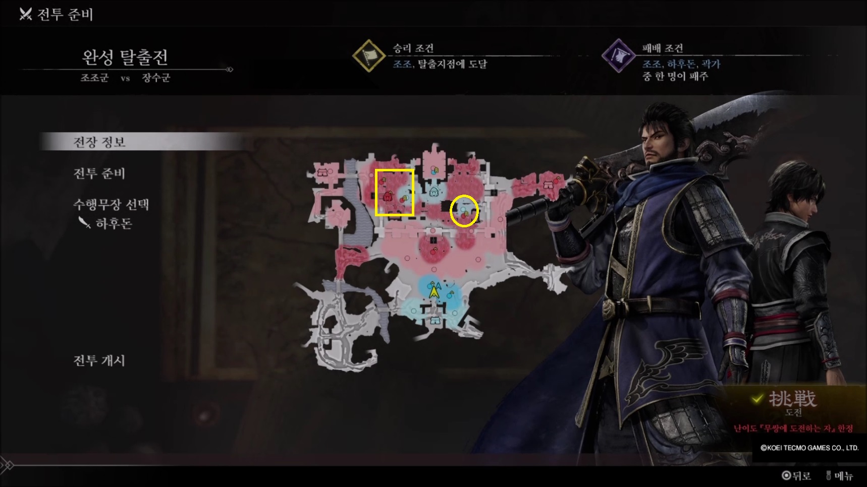 문을 열고 나가서 남은 적을 잡고 조조가 탈출하는 것을 기다리면 클리어가 됩니다.